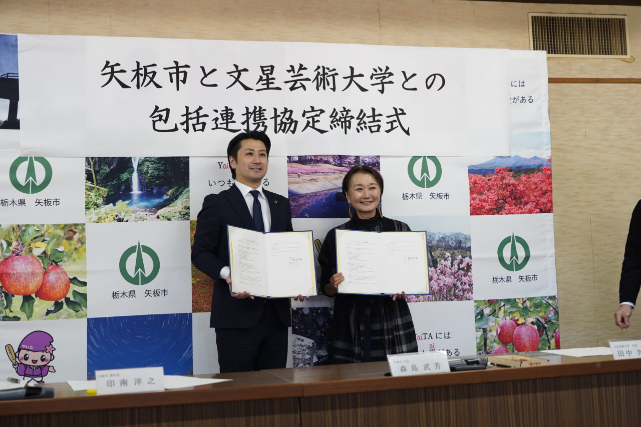 令和8年2月13日(金)に矢板市と文星芸術大学との相互の発展に資する包括連携協定締結式が矢板市役所で行われました。