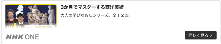 本番組は、西洋美術の名作を等身大サイズで紹介しながら、西洋美術の歴史をわかりやすく解説する番組です。作品を大きなスケールで体感しながら、名作の背景や時代の流れをシンプルに学ぶことができ、初めて西洋美術に触れる方でも楽しめる内容となっています。